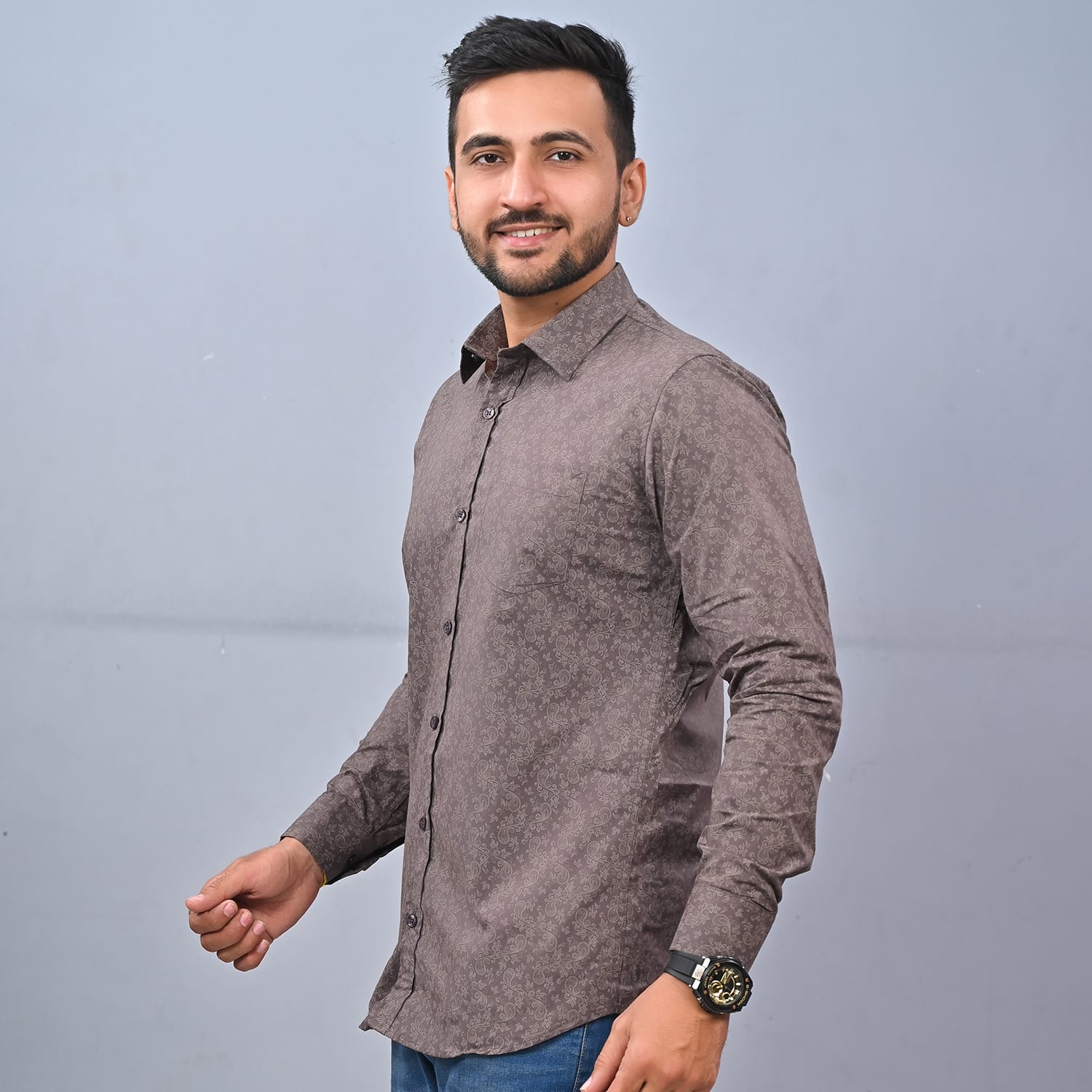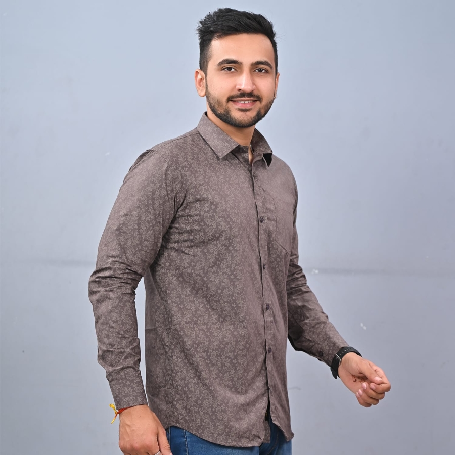 MEN'S BROWN PRINTED SHIRT