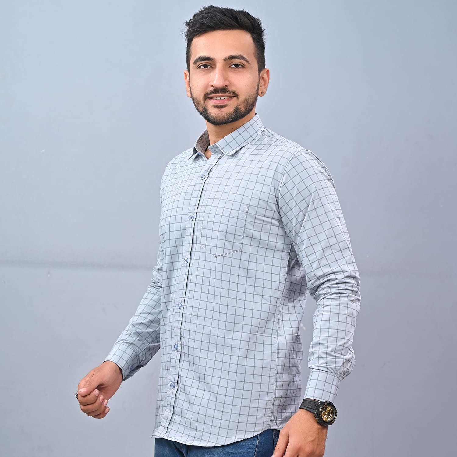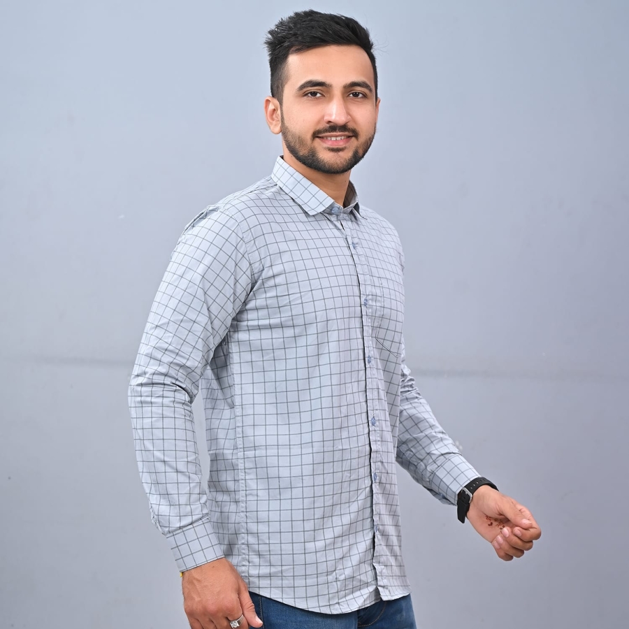 MEN'S CHECKS GREY SHIRT