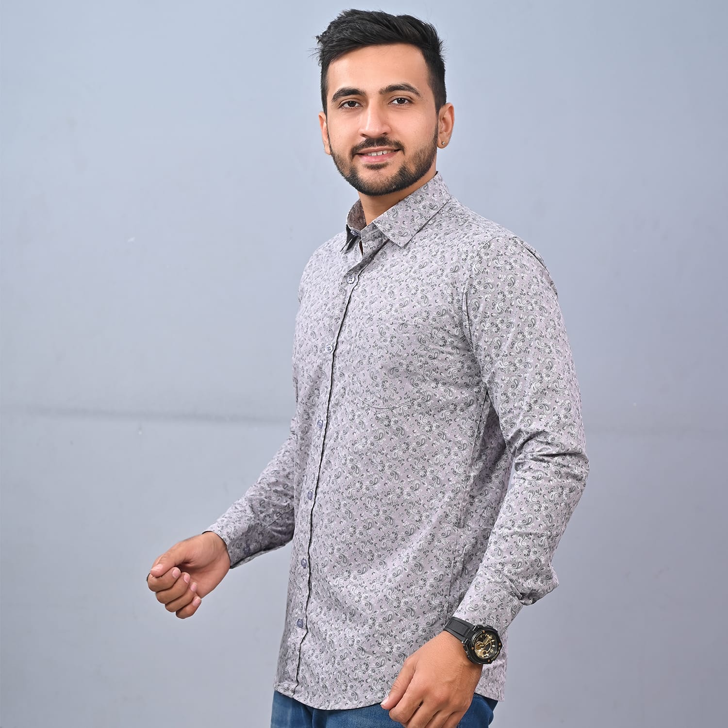 MEN'S GREY PRINTED SHIRT