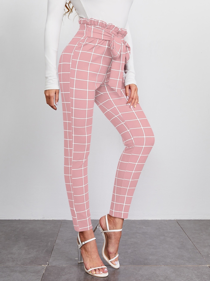 WOMEN'S CHECKS PRINTED PINK PANT