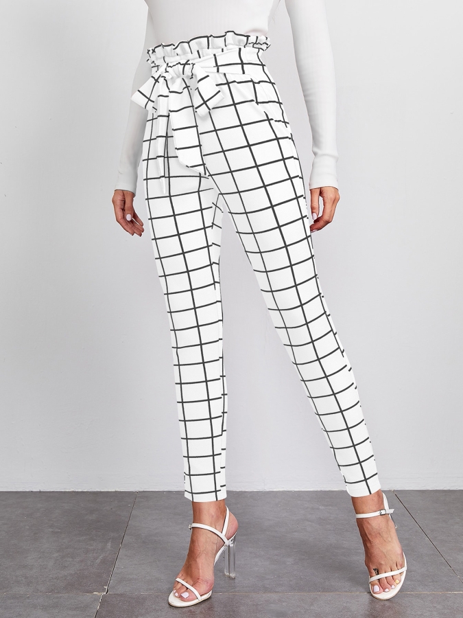 WOMEN'S CHECKS PRINTED WHITE PANT