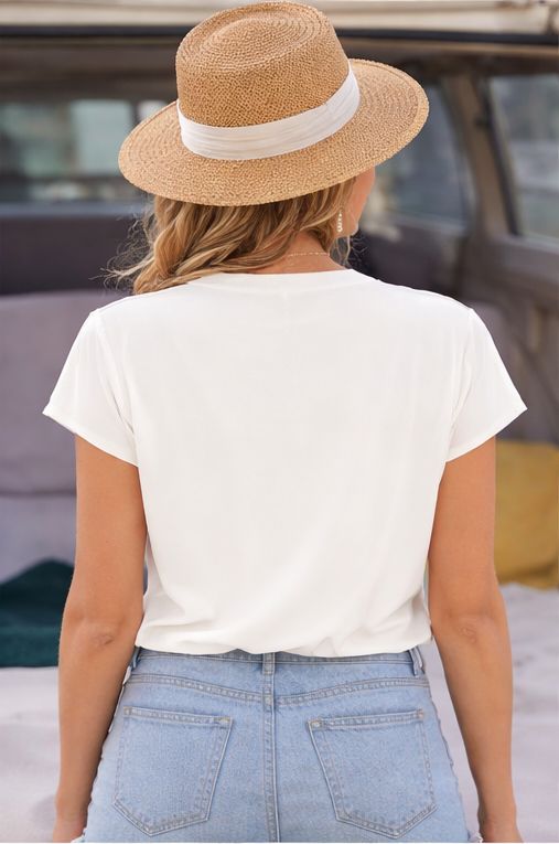 WOMEN`S WHITE ROUND NECK RUFFLE TOP